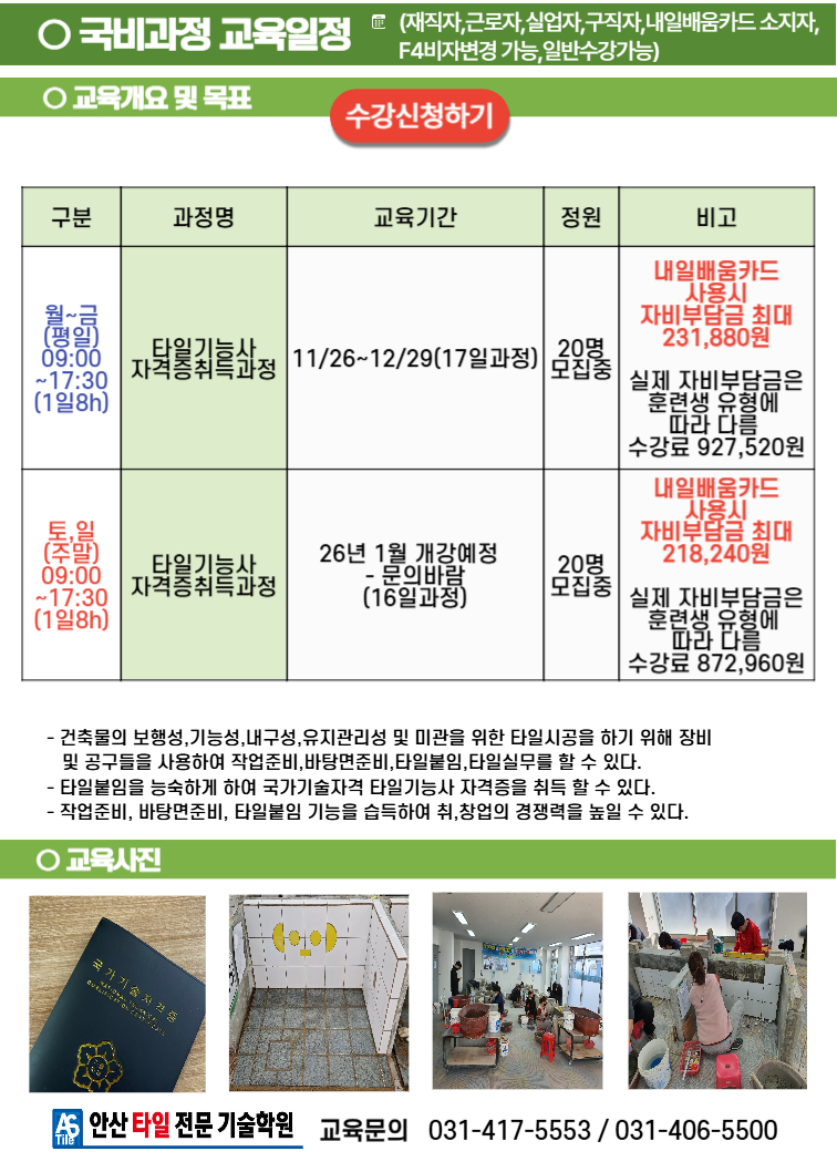 안산타일전문기술학원은 한샘 채용연계 공식인증 훈련기관입니다.