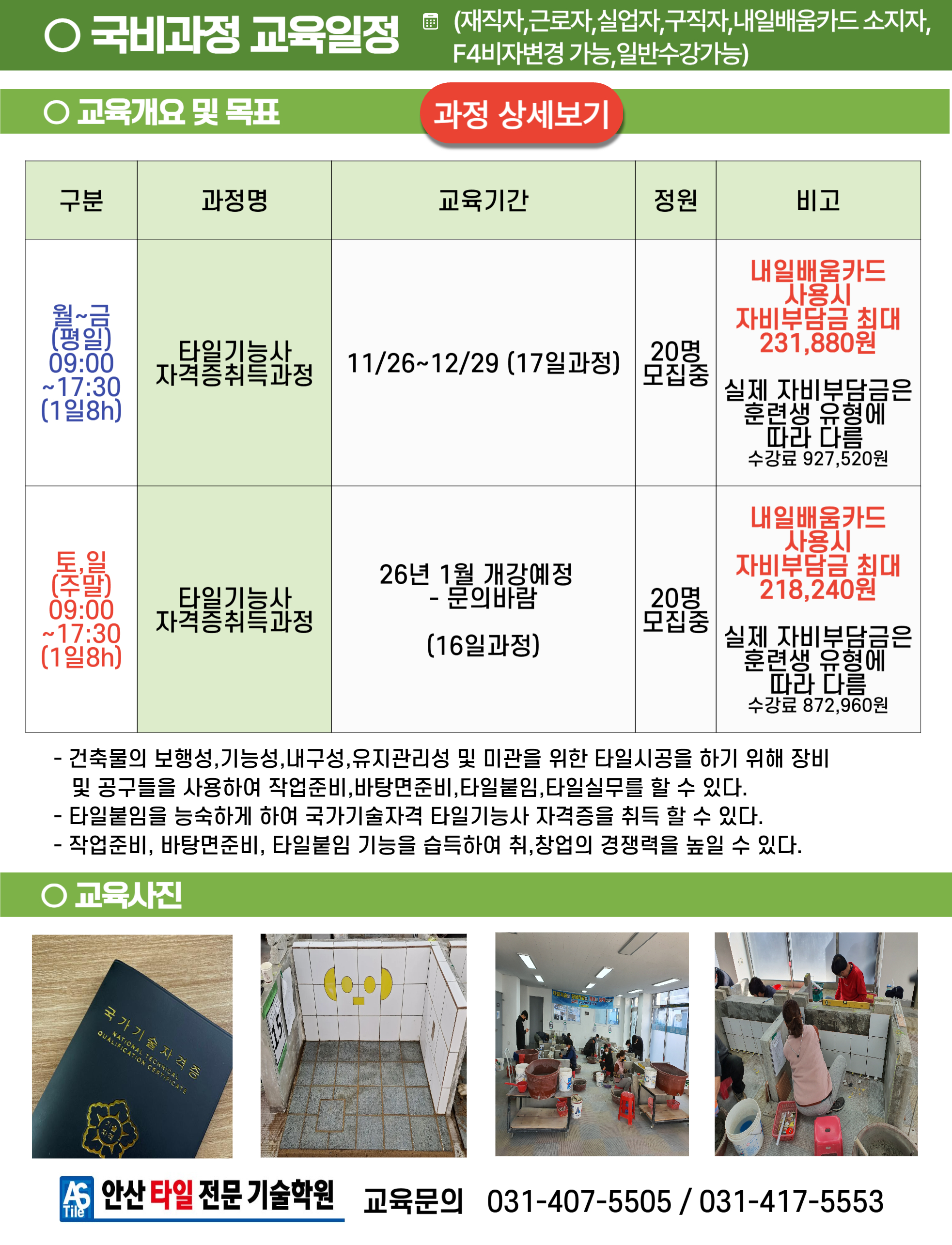 타일공사현장에 필요한 기술인력을 양성하기 위해