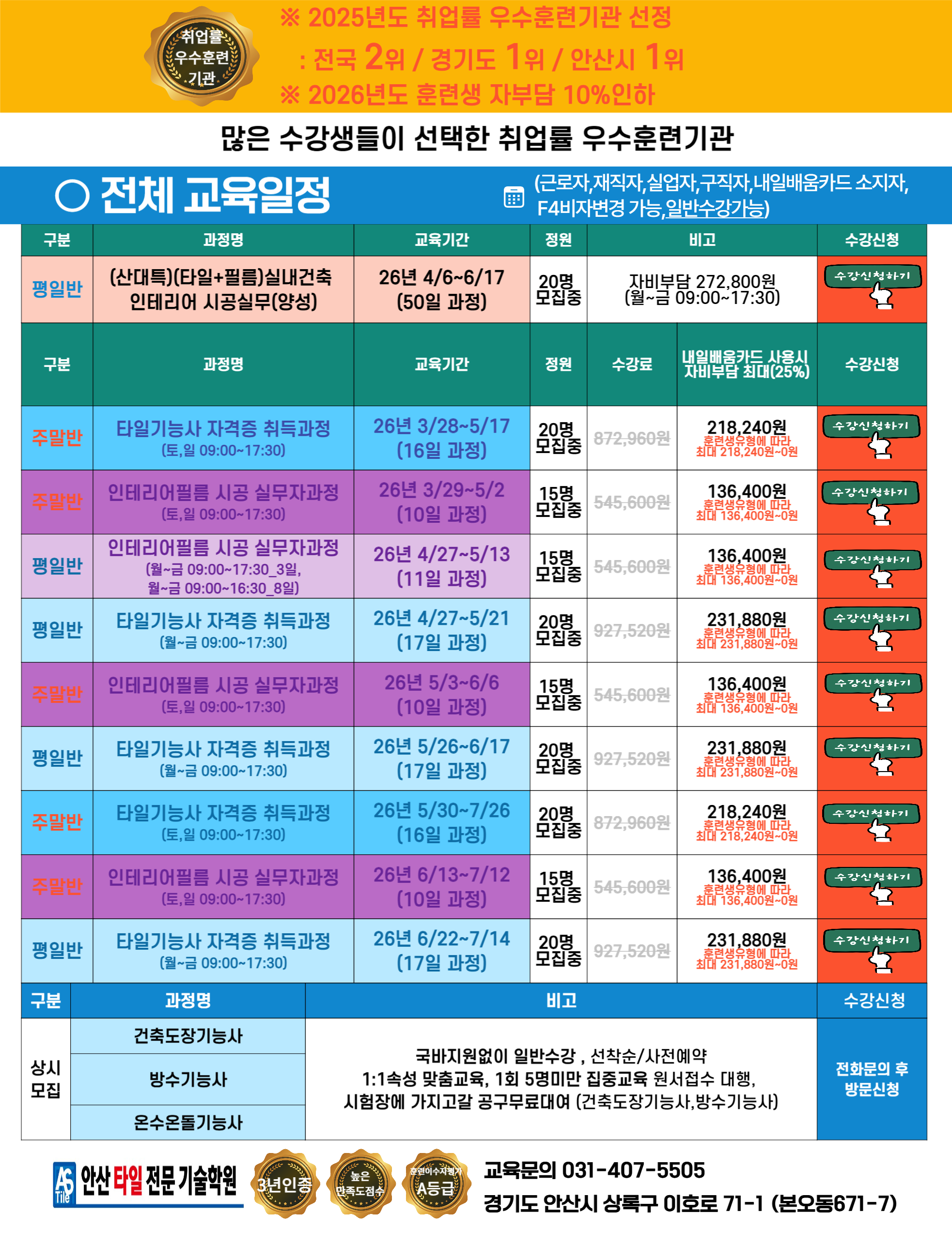 ㆍ [교육일정] 2026년 교육일정(국비과정/일반과정)- ...